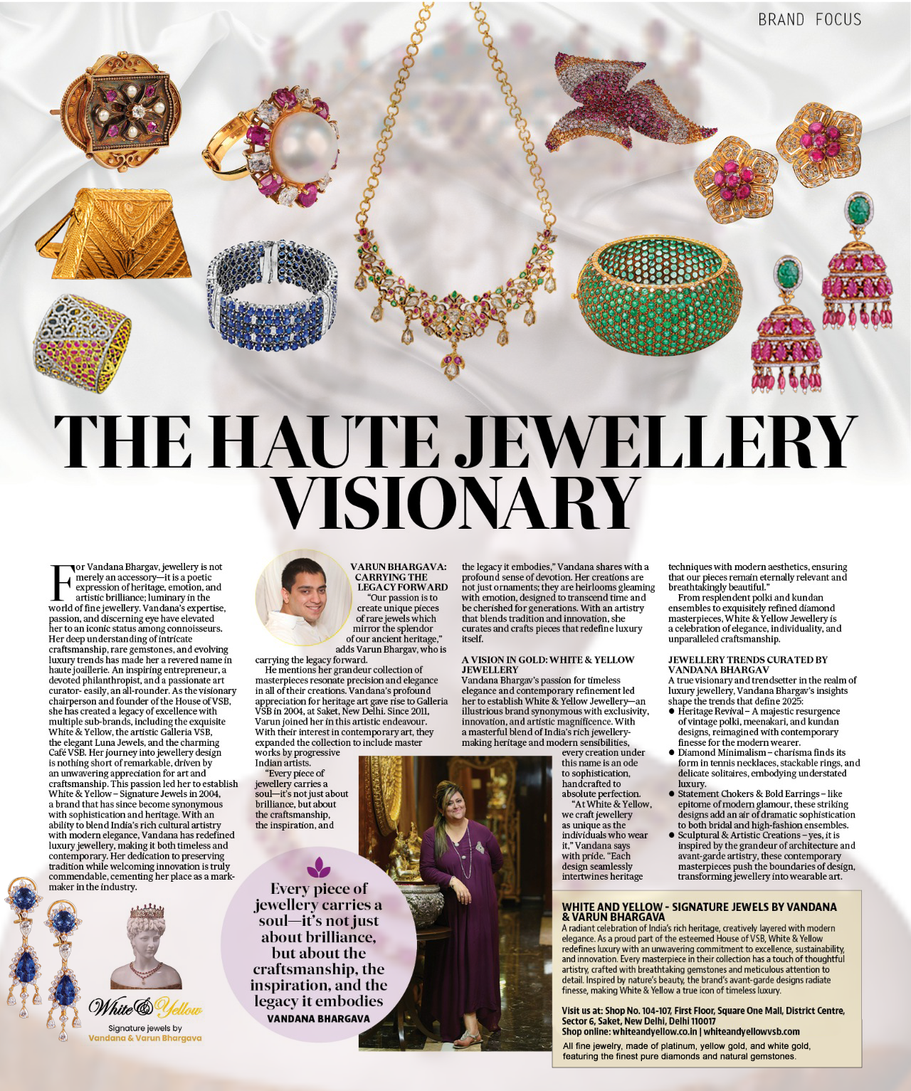 Our Founder and Chairperson, Ms. Vandana Bhargava, a celebrated jewellery designer and curator along with her visionary brands, will be featured in a prestigious magazine celebrating her legacy as a veteran designer and an inspiring entrepreneur.
